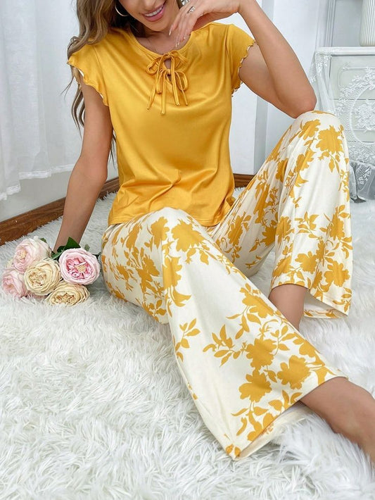 Yellow Flourish Style Shirt Trouser ( PJ Set )