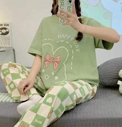 Happy Day Green & Printed T-Shirt Trouser ( PJ Set )