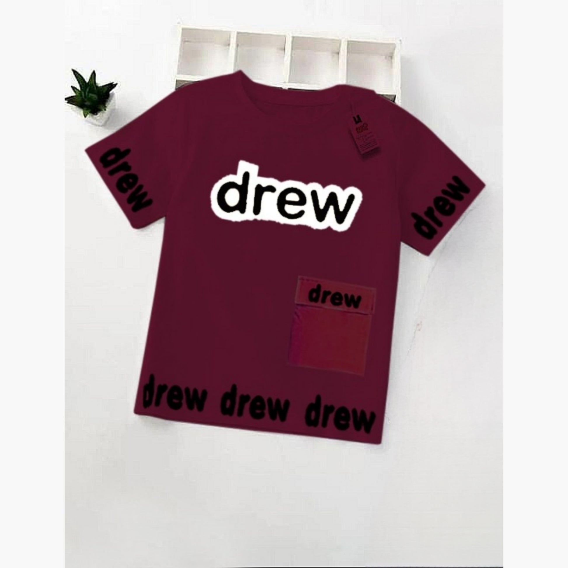 ( T-Shirt ) Maroon Drew Style Shirt For Baby & Baba